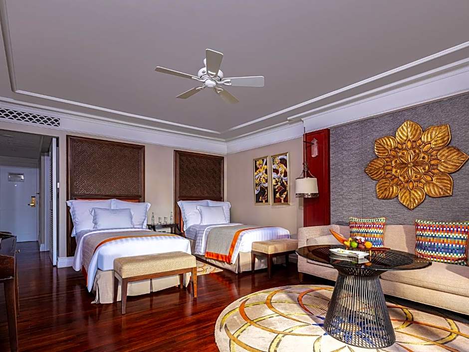 The InterContinental Bali Resort boasts 1606 reviews, with guests raving about their exceptional stay. Take a dip in the outdoor swimming pool or indulge in a spa treatment at the wellness center. For the little ones, there's a kids' pool and a kids' club to keep them entertained. The resort also offers water sports facilities and a golf course for the more adventurous guests. With a restaurant offering a delicious kid-friendly buffet and room service available, there's something for everyone's taste buds.
